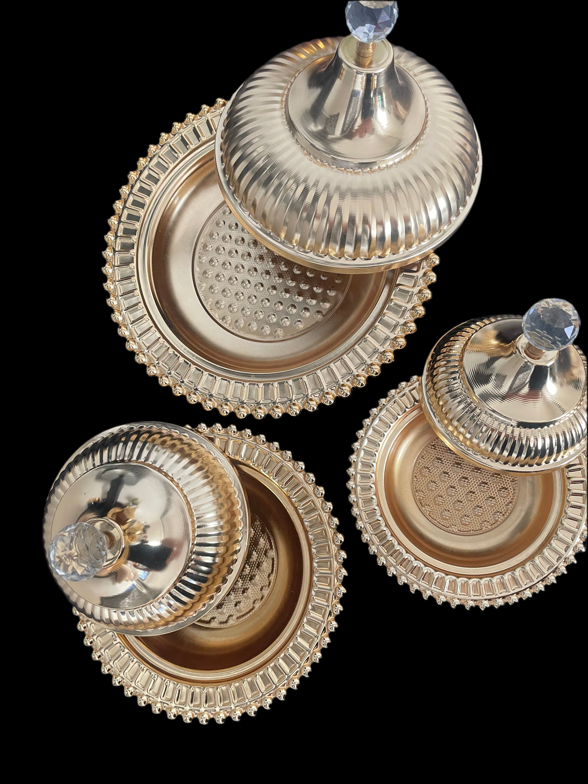 Ensemble de 3 Tajines Décoratifs Dorés – Petit, Moyen et Grand – Style Oriental Chic