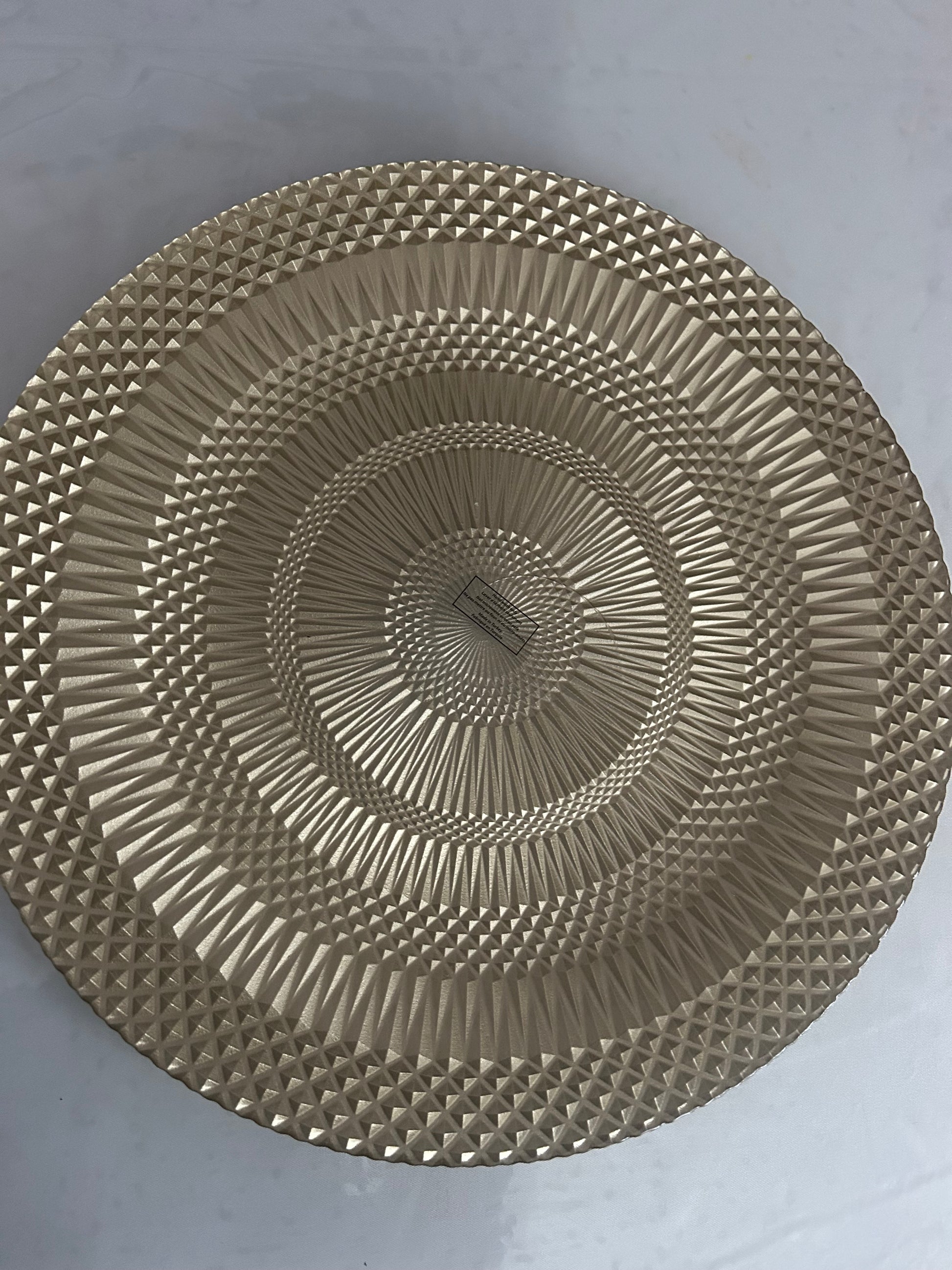 Sublimez votre décoration intérieure avec cette grande assiette décorative dorée de 45 cm. Son design texturé et géométrique reflète la lumière avec élégance, apportant une touche orientale et moderne à votre intérieur.