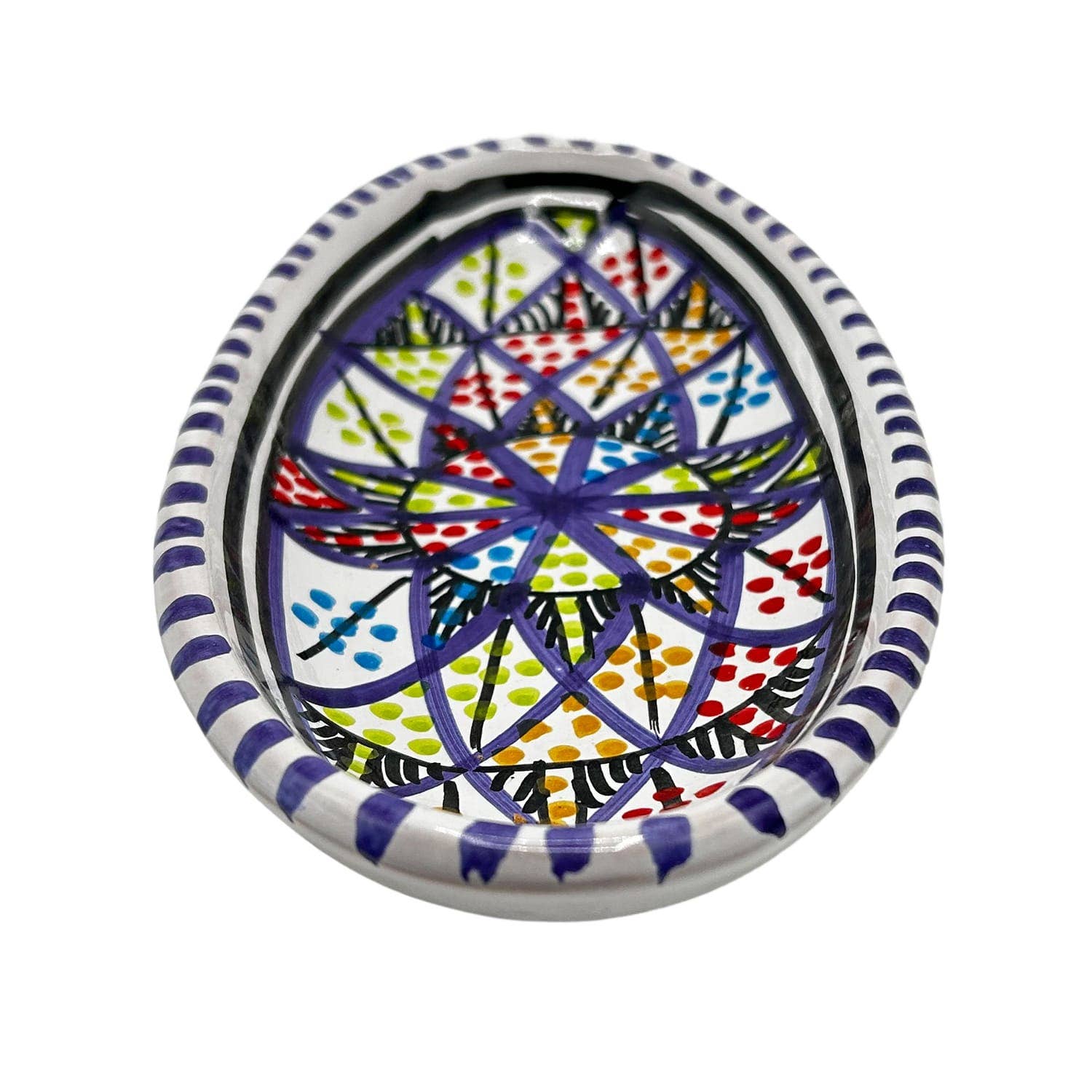 Cette rallonge décorative, travaillée et peinte entièrement à la main par des artisans tunisiens habiles, est un véritable bijou d'artisanat. Mesurant 23x12 cm avec une hauteur de 3 cm, la rallonge est parfaite à la fois comme élément décoratif et comme plat de service pour présenter des apéritifs, des accompagnements ou comme centre de table. Chaque détail peint à la main en fait une pièce unique, idéale pour ajouter une touche d'élégance et de culture tunisienne à n'importe quel environnement.